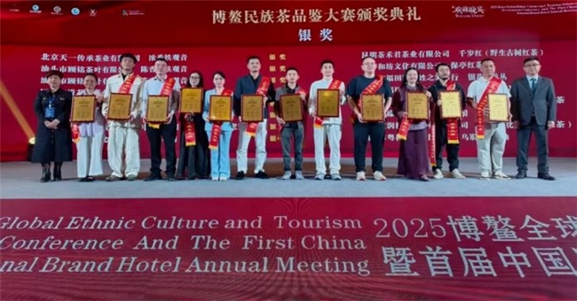 近日在,《2025年首届博鳌全球民族茶叶品鉴大赛》在海南博鳌全球民族文旅产业发展大会上圆满收官。本次大赛由世界旅游文化总会、中国民族贸易促进会与IFBA国际食品饮料联盟等20余家国内外权威机构联合主办的行业盛典,汇聚全国茶业精英与国家级评茶大师,以严苛评审体系彰显专业分量。 深昌號古树茶品牌旗下《龙的精神》产品凭借上乘品质与深刻文化内涵,成功斩获大赛“银奖”,彰显品牌系列产品的过硬实力。