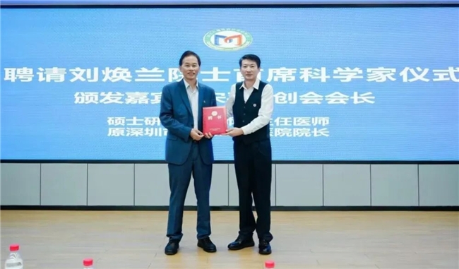 最后举行重要聘任与授牌仪式,宋平创会会长代表慢性病会聘请广州中医药大学教授、博士生、博士后导师、中医主任医师、联合国国际生态生命安全科学院刘焕兰院士担任研究会首席科学家、顾问,刘焕兰院士也向慢性病会授予全养生慢性病康复引领单位牌匾并赠送全养生专著10本,勉励慢性病会深耕慢性病康复与全养生融合,打造深圳特色慢病防治服务品牌。高度肯定慢性病会务实作风与发展潜力,期待携手推进慢病防治创新实践,惠及更多市民。