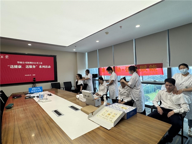 在深圳分公司总部,中医舒压活动现场暖意融融。工会邀请资深中医团队设置肩颈按摩、拔罐、刮痧、艾灸、耳穴压豆等服务专区,针对办公职员与管理人员的“职业通病”精准辨证施治,有效缓解肌肉紧张与身心疲惫。有职工直言:“这样的活动可以多来几次!”